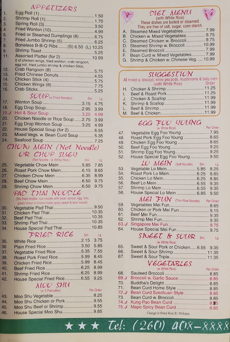 China House Restaurant in Fort Wayne offers a vibrant menu that embodies the essence of authentic Chinese cuisine. Their selection of Lo Mein and Mei Fun noodles features an inviting range from vegetable to shrimp and house special varieties, each crafted with balanced flavors and fresh ingredients. The Singapore Mei Fun stands out with its spicy kick, blending shrimp, pork, and chicken for a harmonious taste. Generous portions and made-to-order dishes ensure quality and warmth in every bite.