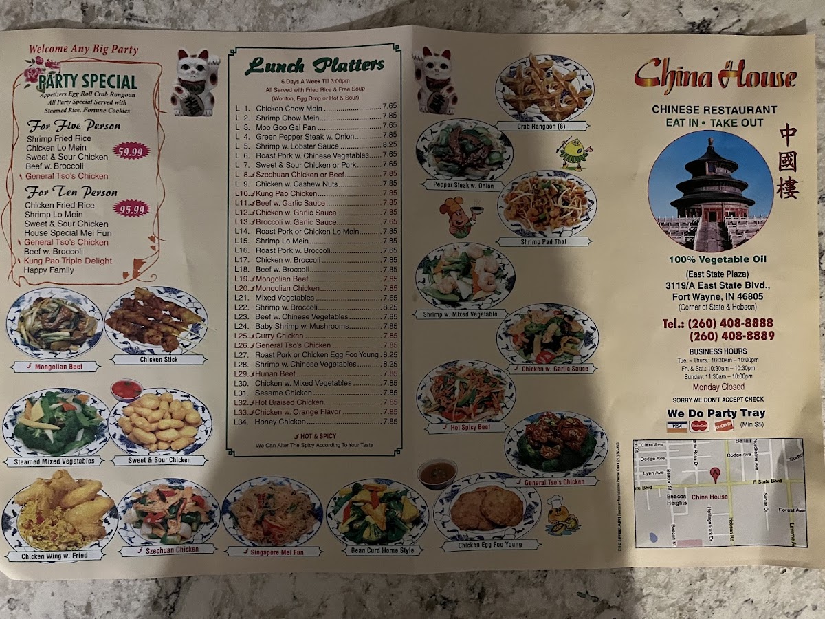 For larger gatherings, the Party Specials provide an excellent way to sample favorites like sweet & sour chicken, beef with broccoli, and hot and spicy General Tso’s chicken. The menu’s thoughtful variety and consistent execution highlight China House’s dedication to satisfying diverse palates.